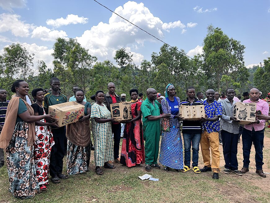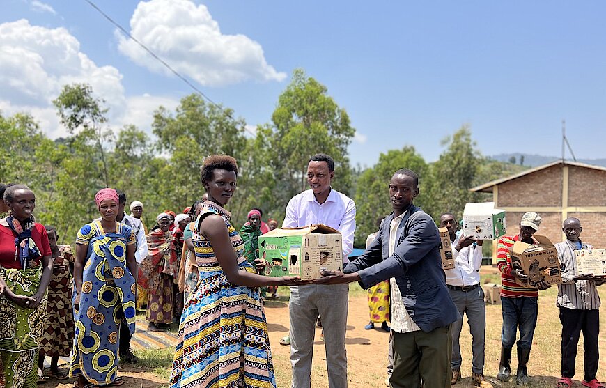 Abaturage bahawe izi nkoko bazishimiye, bagaragaza ko zigiye kubafasha kwiteza imbere binyuze mu kubona ifumbire, kandi zikazanateza imbere imirire myiza mu miryango.