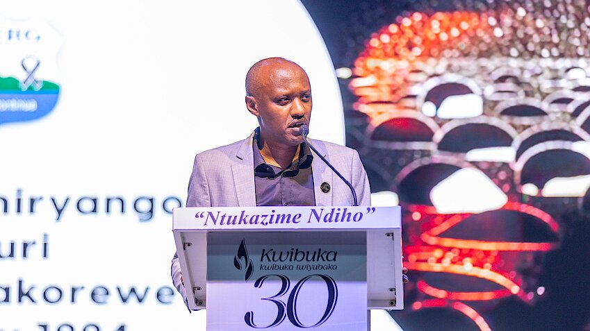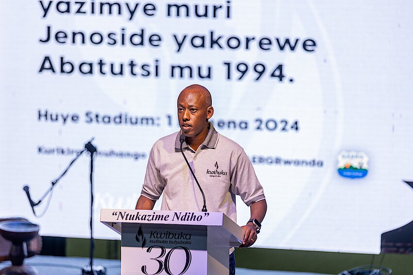Yagize ati "Mu karere ka Huye twahuriyemo uyu munsi, hamaze kumenyekana amakuru y'imiryango Yazimye irenga 600, yari igizwe n'abantu 2,634. Duteraniye hano kugira ngo duharanire ko jenoside itazongera kandi ko batazima, turiho. [...] Jenoside yakorewe abatutsi yateguwe n’ubuyobozi bubi bunayishyira mu bikorwa. Tuzakomeza kurwanya igengabitekerezo ya jenoside kandi buri wese arasabwa kugira uruhare muri urwo rugendo"