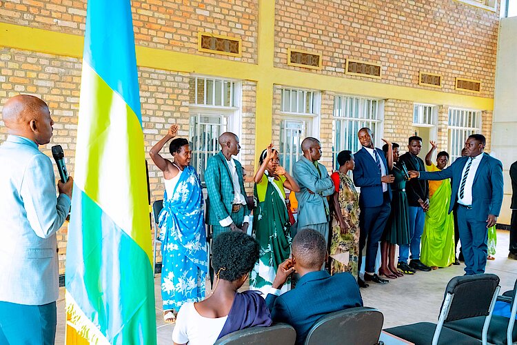 Iyi miryango yasezeranye byemewe n'amategeko kuwa 26 Ugushyingo 2025 yishimiye gusangira ibyishimo n'Ubuyobozi, kandi yiyemeza kutazasubira inyuma mu ntambwe bateye yo kubaka imiryango izira ihohotera iryo ari ryo ryose.