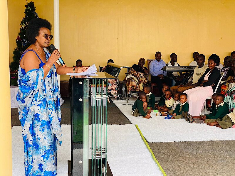 Intwaza Concessa MUKANKUSI ufite imyaka 70, wari uhagarariye abandi babyeyi b’Intwaza bo mu Impinganzima ya Huye, yashimiye byimazeyo Nyakubahwa Perezida Paul Kagame na Madamu Jeannette Kagame ko babubakiye urugo rwiza bakabakura aho bari bariciwe n'agahinda ubu bakaba babayeho neza bateta ndetse bakaba babona n’abana babasura bagasangira ibyishimo ndetse haba n’ibyago nabwo bakabona ababakomeza.