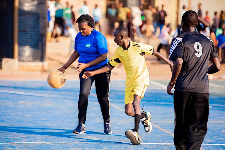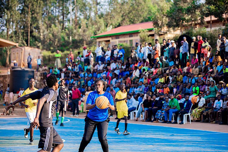 Umuyobozi w'Akarere wungirije ushinzwe imibereho myiza Kankesha Annonciata yifatanyije n'urubyiruko mu mukino w'umupira w'amaboko (Basketball). Urubyiruko rwanashyikirijwe imipira itandukanye ruzakoresha mu gihe cy'ibi biruhuko.
